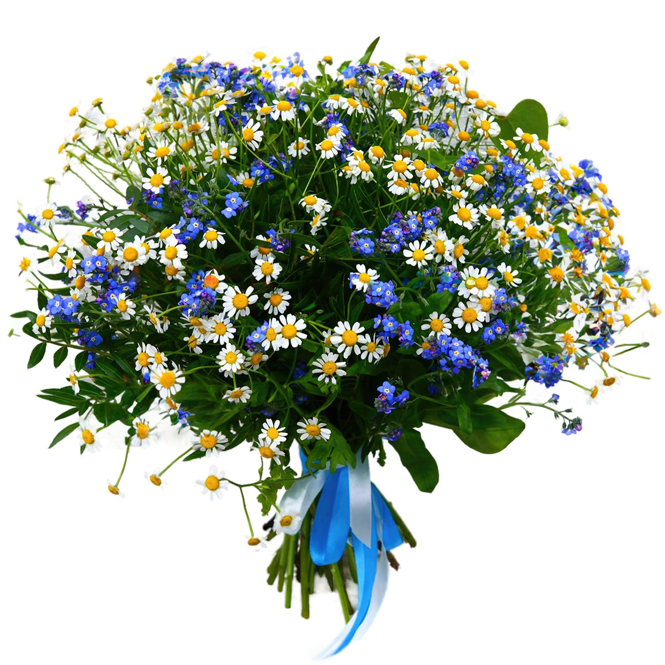 | Состав | Матрикарии, Незабудки, Ромашки |