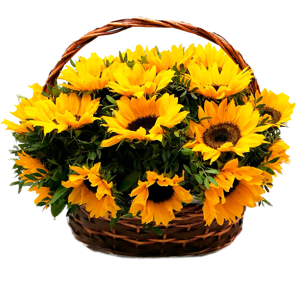 Корзина с цветами «Луч солнца» ждет вашего заказа: чтобы купить цветы, оформляйте заказ на сайте меньше чем за 3 часа. Также можно выбрать для заказа в Гусеве по телефону +7(993)431-06-99 или по почте kate@loveflowers24.ru.