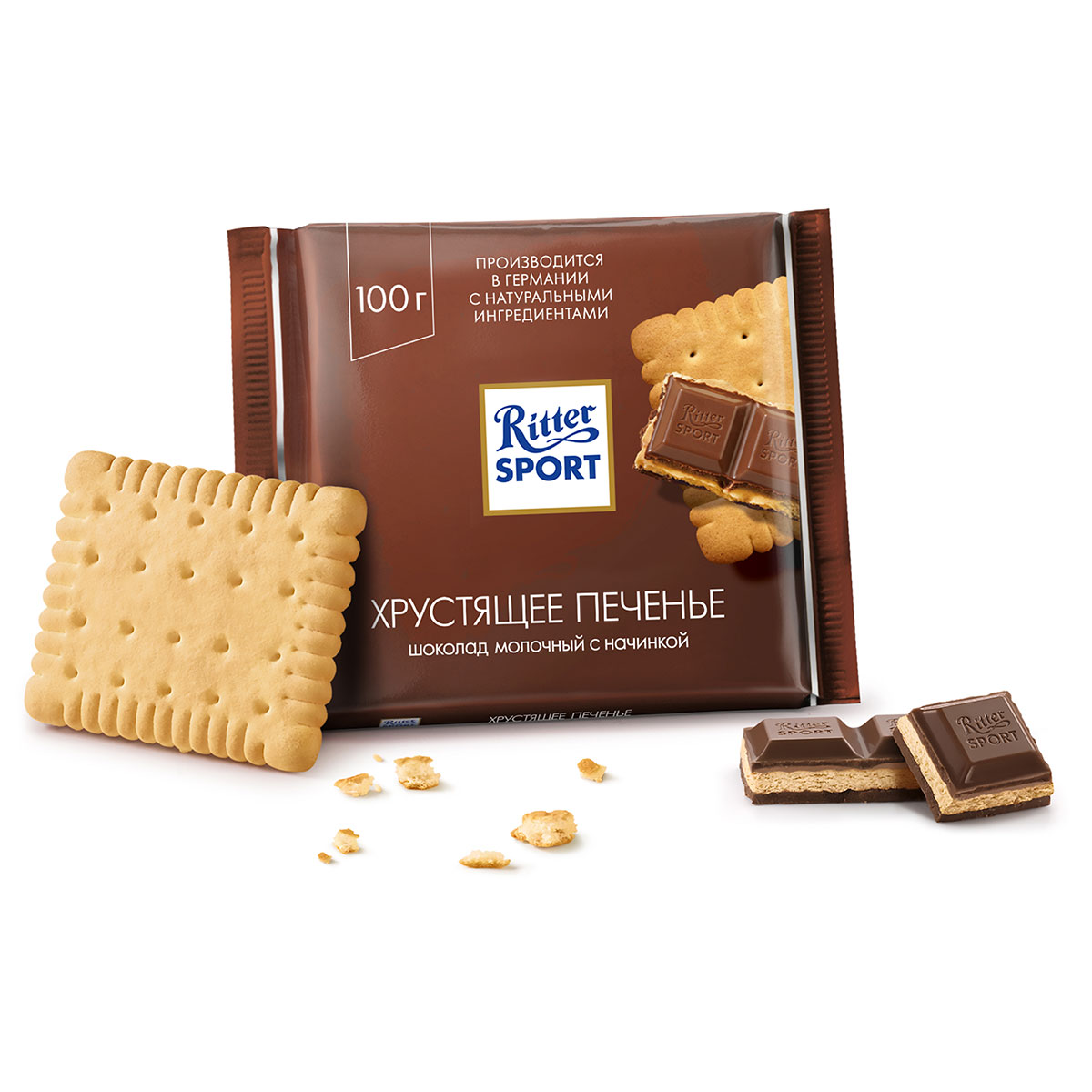 Шоколадка «Ritter SPORT Хрустящее Печенье» ждет вашего заказа: чтобы купить подарок, оформляйте заказ на сайте за 1 минуту. Также можно заказать в Гусеве по телефону +7(993)431-06-99 или по почте kate@loveflowers24.ru.