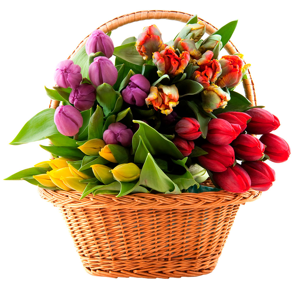 Цветы в корзинке «Микс тюльпанов» с доставкой по г Гусев: вы можете купить букет в интернет-магазине цветов «Флормания» по цене от 3590 руб.